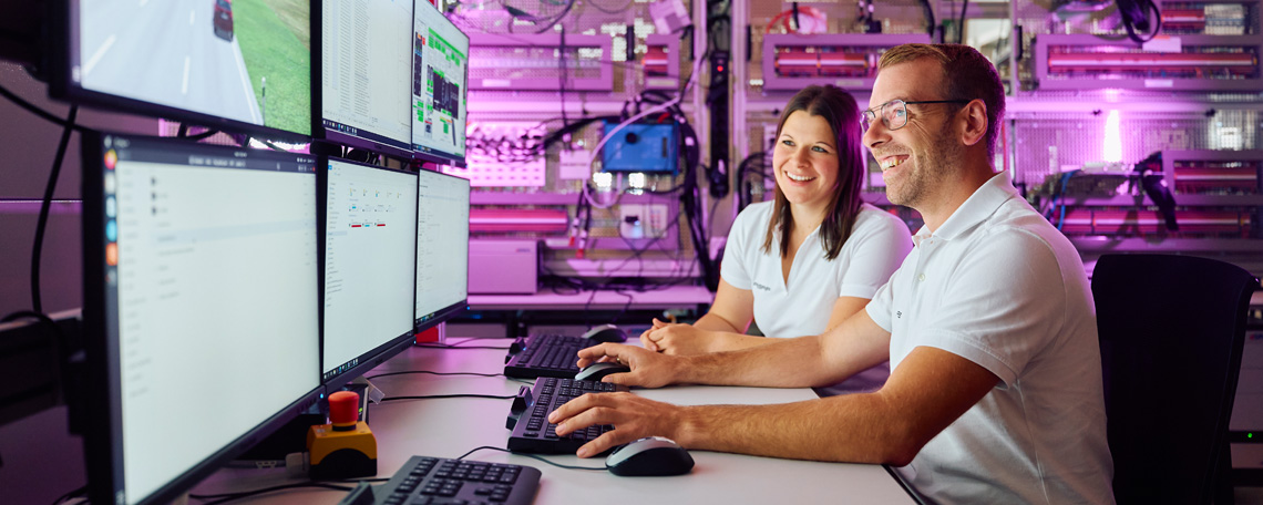 Erprobung. Integration. Absicherung von Komponenten sowie Teil- und Gesamtsystemen. Durchgängige virtuelle Absicherung ist für uns essenziell. Komponenten und Systeme werden so verifiziert und validiert, bevor sie real existieren.